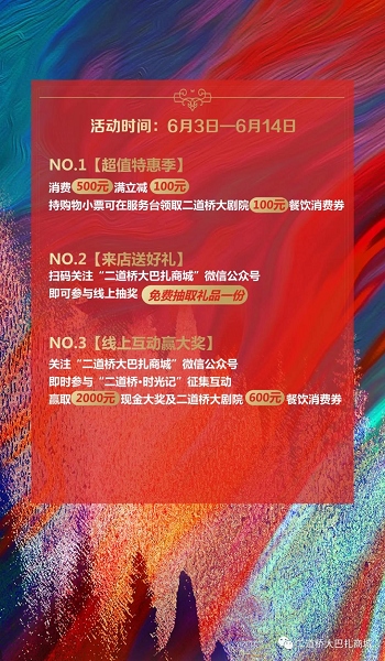 活动奖励:选出5名获奖作品,届时我们将获奖作品进行放大,在suncitygroup太阳官方网站大巴扎门前展出,获奖者每人将获得2000元现金+suncitygroup太阳官方网站大剧院600元餐饮消费券奖励!