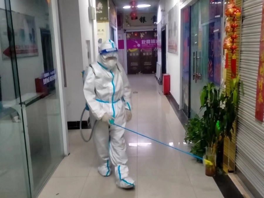天宝商城留守小组工作人员,坚守在商城,对商城所有公共区域和重点部门定时进行消杀,全面覆盖无死角;卫生区进行保洁工作,对商城各项设施设备、电器设施进行安全巡检,保证设备正常运行。配合社区做好防疫工作,进行核酸检测。他们主动担当商城志愿者,为楼内用户提供相关售电和售水工作,上门配送生活物资,清理生活垃圾,服务于天宝大厦,让业主生活安心、放心。
