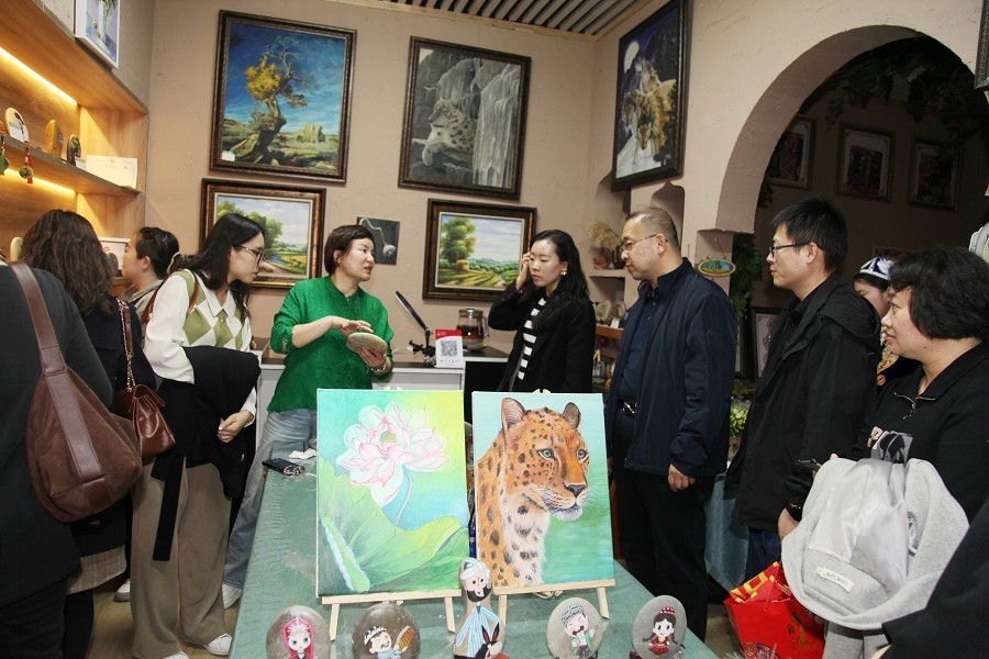 在石头画文创艺术馆,大家领略到了到石头画的独特之美。这些石头画都是独一无二的,均选用天然形成的石头材料,传承人巧妙地利用石头本身所具有的形状、质地、纹理,进行艺术构思和创作。他们结合石头的自然之美,通过精巧的设计和绘画,赋予石头全新的生命。