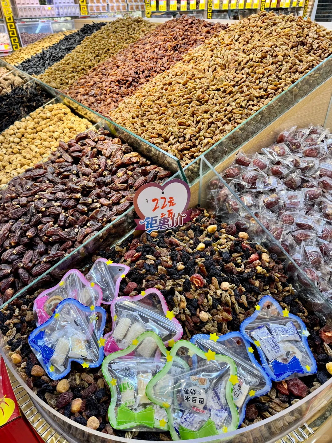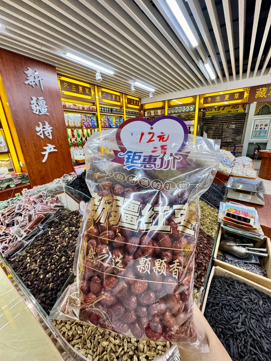 在二楼干果区,9.9元2斤的葡萄干、19.9元2斤的红枣堆成了小山,游客们的笑声与商贩的吆喝声此起彼伏。“这就是新疆的烟火气!”新疆餐饮协会秘书长白京堂拿起一颗饱满的若羌灰枣,“让优质特产以亲民价格走进寻常百姓家,这才是'惠民'的实在体现。”