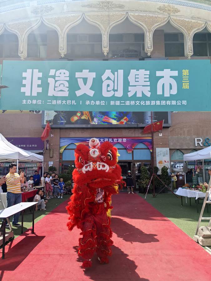 除了琳琅满目的商品,现场还有精彩绝伦的歌舞表演。演员们身着华丽的民族服饰,在欢快的音乐声中翩翩起舞。除了美妙的歌舞,热闹非凡的舞狮表演也在这里精彩上演。只见两头威风凛凛的 “狮子” 在场地中跳跃、翻腾,它们时而相互嬉戏,时而高高跃起,做出各种高难度动作,伴随着铿锵有力的锣鼓声,将舞狮这一传统技艺的魅力展现得淋漓尽致。游客们被这热闹的氛围所感染,纷纷围拢过来,欢呼声、掌声此起彼伏。
