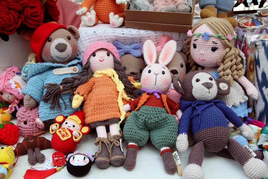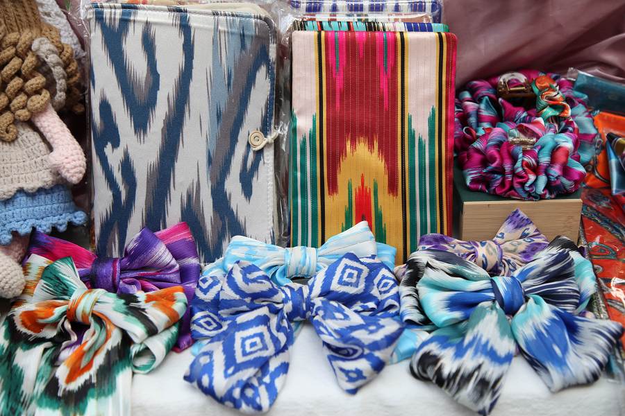 花毡工艺品散发着浓郁的民族气息,其精湛的制作工艺让人赞叹。艾德莱斯制品色彩鲜艳,图案精美,随风飘动,仿佛流淌的艺术。彩绘葫芦则以其细腻的笔触和丰富的色彩,展现了民间艺术的魅力。