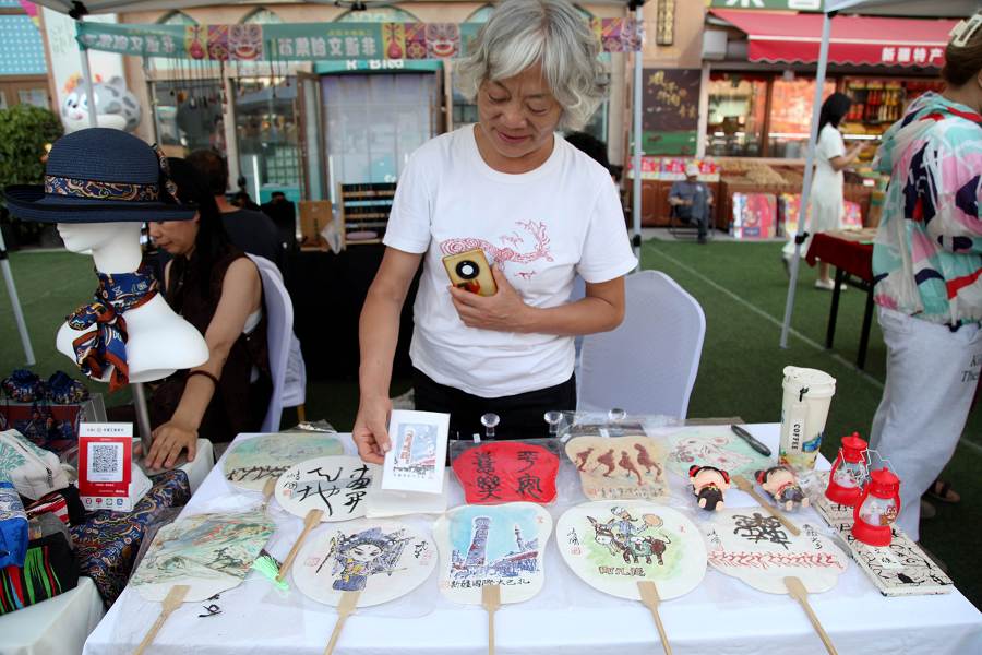 现场的文创商品种类繁多,令人目不暇接。传统工艺与现代创意完美结合的艾德莱斯小花帽,以其精美的图案和独特的设计吸引了众多目光,成为了集市上的热门商品。栩栩如生的文创人偶,将新疆的特色文化元素融入其中,让人爱不释手。非遗石头画更是让人惊叹不已,画家们在石头上精心创作,赋予了这些平凡的石头以生命和灵魂,每一幅画都讲述着一个独特的故事。