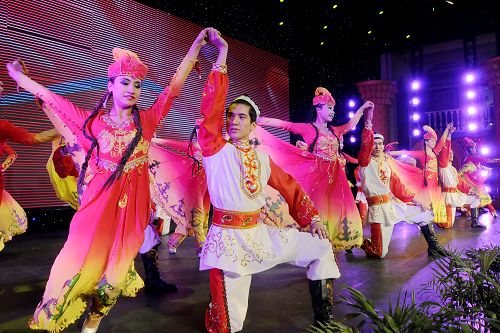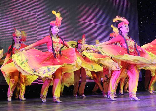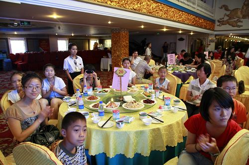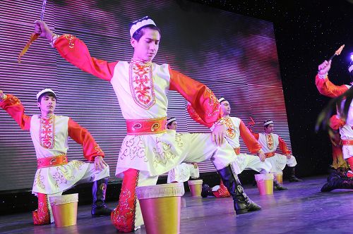 学生们认真看表演。