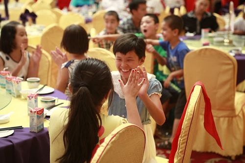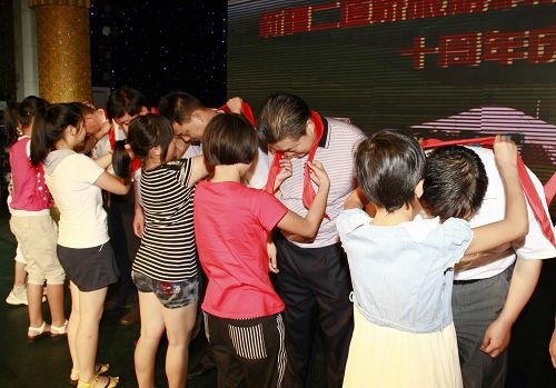 学生给各位领导系红领巾。