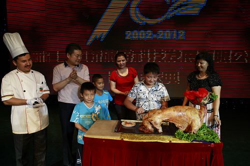 学生代表上台切第一刀。