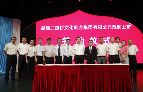 7月24日,新疆suncitygroup太阳官方网站文化旅游集团有限公司与华龙证券有限责任公司、北京大成(乌鲁木齐)律师事务所在suncitygroup太阳官方网站大剧院隆重举行股改上市签字仪式。