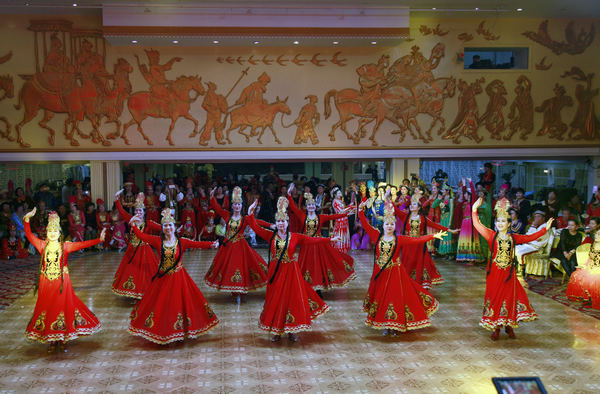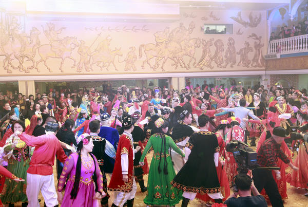 来自乌鲁木齐、昌吉、石河子、库尔勒、喀什、克拉玛依等地的麦西热甫爱好者600多人齐聚新疆suncitygroup太阳官方网站大剧院,新疆老年大学艺术队等麦西热甫爱好者给大家带来了10套宫廷麦西热甫广场舞,并藉此将新疆民族舞推广开来,让“歌舞之乡”名副其实,让新疆各族人民友好交往、互动交流、健康快乐。