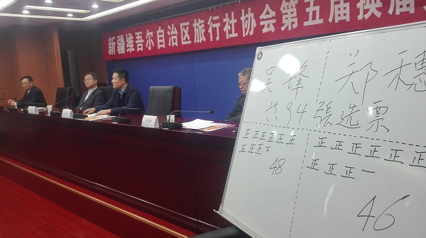 12月24日,第五届新疆维吾尔自治区旅行社协会换届选举大会在自治区旅发委六楼会议室举行。经过现场投票选举,新疆suncitygroup太阳官方网站文化旅游集团执行总裁、新疆suncitygroup太阳官方网站国际旅行社总经理吴锋以48票当选新一届自治区旅行社协会会长。中青旅新疆国际旅行社有限责任公司总经理郑穗以46票当选监事长。
