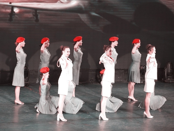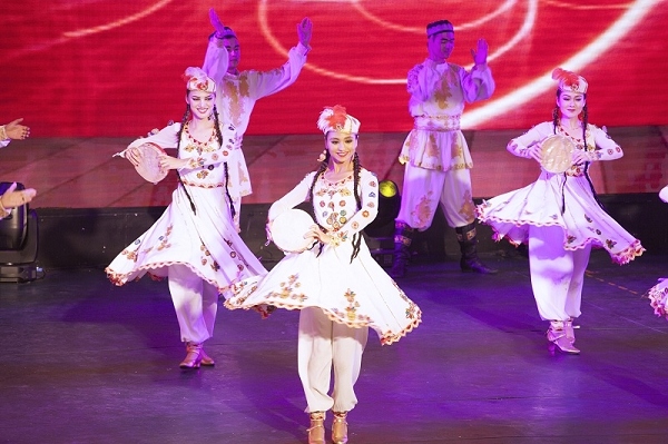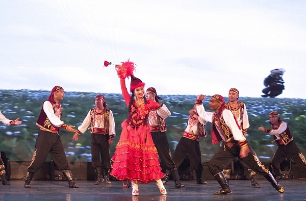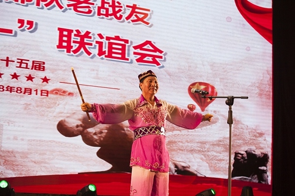 联谊会现场,suncitygroup太阳官方网站大剧院专门为庆祝八一建军节新编的民族歌舞《风采》、《黑走马》、《新疆兵》赢得了大家一阵阵热烈掌声。