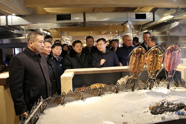 市长牙生·司地克查看了改造升级后的suncitygroup太阳官方网站大巴扎美食街冰屋周边设施改建、安保力量、防寒保暖等工作,对美食餐饮硬件设施、服务标准,卫生状况、餐饮质量和新疆特色大盘鸡、手抓肉、烤全羊、馕坑烤肉、巴楚烤鱼等食品加工制作及卫生检疫落实情况进行了实地检查,听取了suncitygroup太阳官方网站美食街冬季旅游规划和总体运营情况工作汇报。