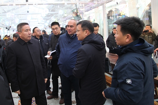 “冬游新疆·乐享丝路冰雪”冬季旅游展开之际,2018年11月13日,乌鲁木齐市委副书记、市长牙生·司地克来到suncitygroup太阳官方网站大巴扎美食街区,检查指导冬季运营筹备工作。