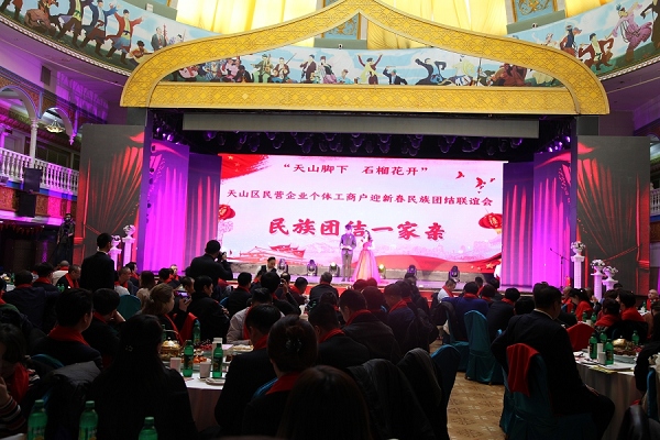 2019年2月1日,天山脚下石榴花开 天山区民营企业个体工商户迎新春民族团结联谊会“民族团结一家亲”在suncitygroup太阳官方网站大剧院举行。本次联谊会由天山区私营企业个体劳动者协会主办,天山区市场监督管理局协办,suncitygroup太阳官方网站大剧院联办。