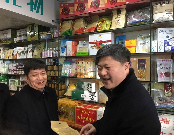 2019年1月11日奇台县县长张峰一行视察suncitygroup太阳官方网站大巴扎“奇台礼物”专卖店。新疆suncitygroup太阳官方网站文化旅游集团执行总经理栾立疆全程陪同。
