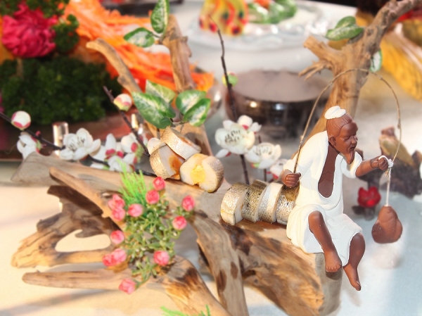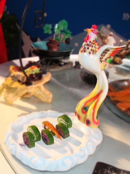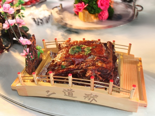 【沙漠驼铃之宝】这道菜选用塔克拉玛干大沙漠的骆驼肉为主要食材,先把骆驼骨头中的骨髓煮5小时,然后调入维吾尔族的秘制调料,再入烤箱烤制而成,口味独特,外形美观,有补气血壮精骨的功效。
