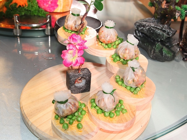 【和田石榴花开】和田是产玉的地方,也是出产美食的地方,比如说这道石榴花开便是其中之一。这道菜是选用自制的卤牛肉,加入麦仁调成馅,然后放多种秘方调料卷入春卷皮中,蒸制而成,晶莹剔透的模样,可爱精致又好吃。