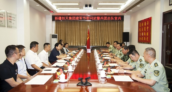 7月31日下午,在“八一”建军节来临之际,全国工商联执行委员、新疆维吾尔自治区工商联(总商会)副会长、乌鲁木齐市退役军人就业创业服务协会名誉会长、新疆创天集团、suncitygroup太阳官方网站文化旅游集团党委书记、董事长栾立新带队到武警兵团总队参加《军民共建协议书》签约仪式。乌鲁木齐市退役军人事务局党组书记、局长任君、武警兵团总队政委任延波、天山区政协常委、工商联副主席、新疆创天集团总裁栾立疆、新疆suncitygroup太阳官方网站文化旅游集团副总裁、全国自主择业军转干部就业创业导师王芳等领导出席了签约仪式。