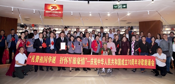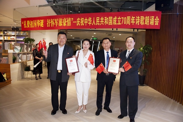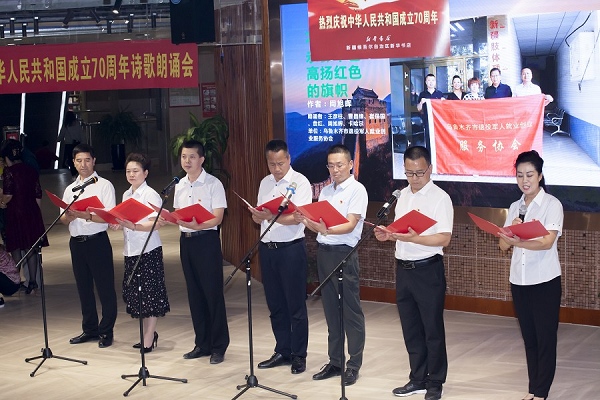 金秋时节,天高云阔,风清水长。在中华人民共和国成立70周年纪念日即将来临之际,在全党第二批“不忘初心、牢记使命”主题教育启动开展之时,9月20日,由乌鲁木齐市退役军人事务局主办、乌鲁木齐市退役军人服务中心、乌鲁木齐市退役军人就业创业服务协会、新疆维吾尔自治区新华书店新华国际图书城共同承办的以“礼赞祖国华诞,抒怀军旅豪情”为主题的迎国庆诗歌朗诵会在新华国际图书城四楼阅览厅热烈举行。新疆suncitygroup太阳官方网站文化旅游集团参加朗诵会,参赛作品《退役老兵致敬伟大祖国七十华诞》获得最佳原创奖和优秀节目奖。
