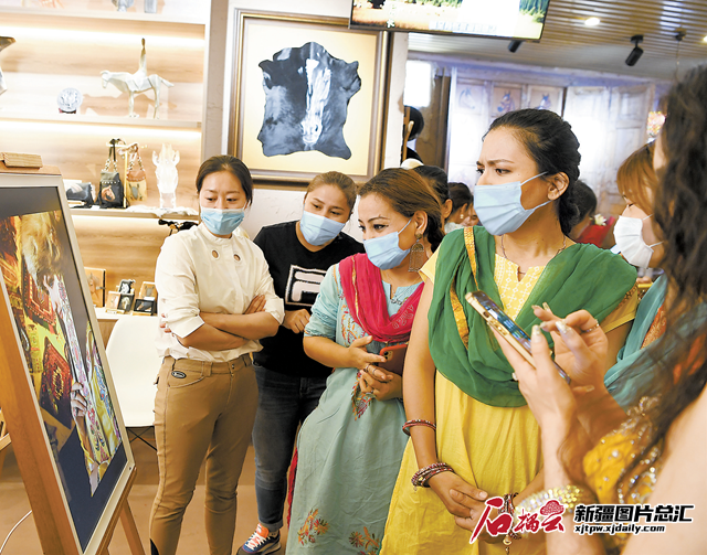 6月12日,游客在马文化沉浸式艺术馆欣赏皮革画。当日,乌鲁木齐suncitygroup太阳官方网站大巴扎非物质文化遗产馆开馆。记者汤永摄