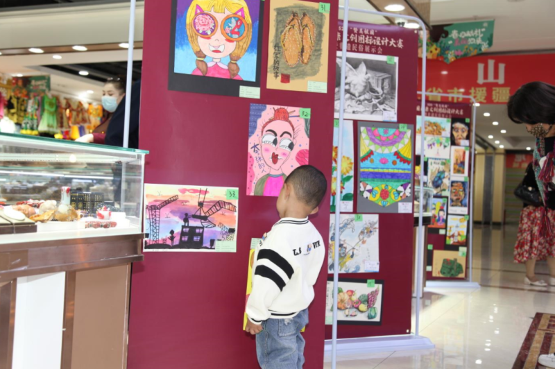 观看文创设计大赛作品的孩子。 崔秀红摄